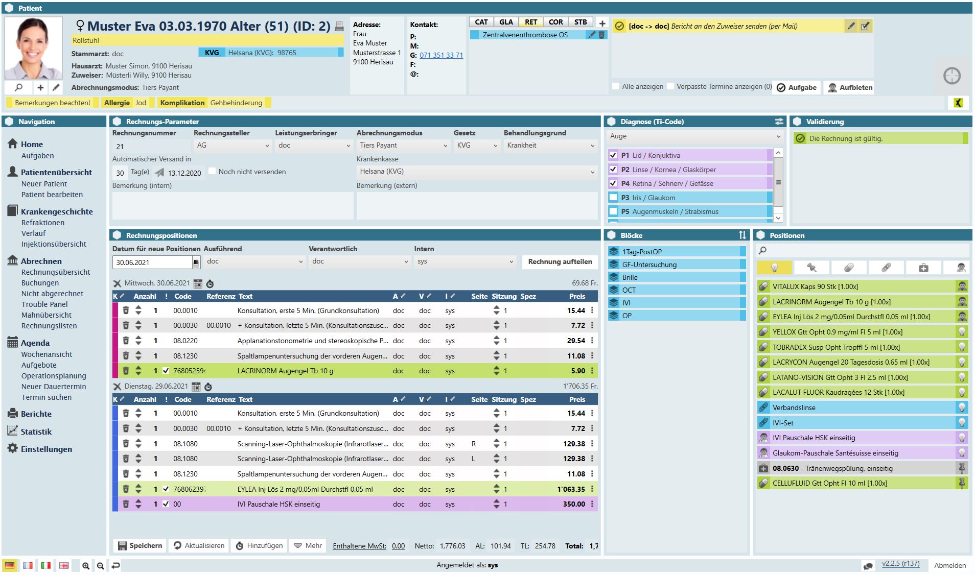 Mit Luna wird Rechnungswesen im medizinischen Bereich ganz simpel: Das Abrechnungstool ist benutzerfreundlich aufgebaut, schnell und zuverlässig. Mit den vordefinierten Abrechnungsblöcken lassen sich häufige Szenarien effizient erfassen. Die programmierte Leistungsliste denkt mit und schlägt Ihnen voraussichtlich benötigte Leistungen, Medikamente und Verbrauchsmaterialien vor. Luna überprüft zudem automatisch und verlässlich die aktuellen Tarmed-Richtlinien. Damit werden fehlerhaft ausgestellte Rechnungen und der administrative Aufwand minimiert. Ganz unkompliziert können Sie zudem die gewünschte Laufzeit der Rechnungen definieren. Das Luna-Abrechnungssystem stellt die Fakturen automatisch am vorgesehenen Datum aus.