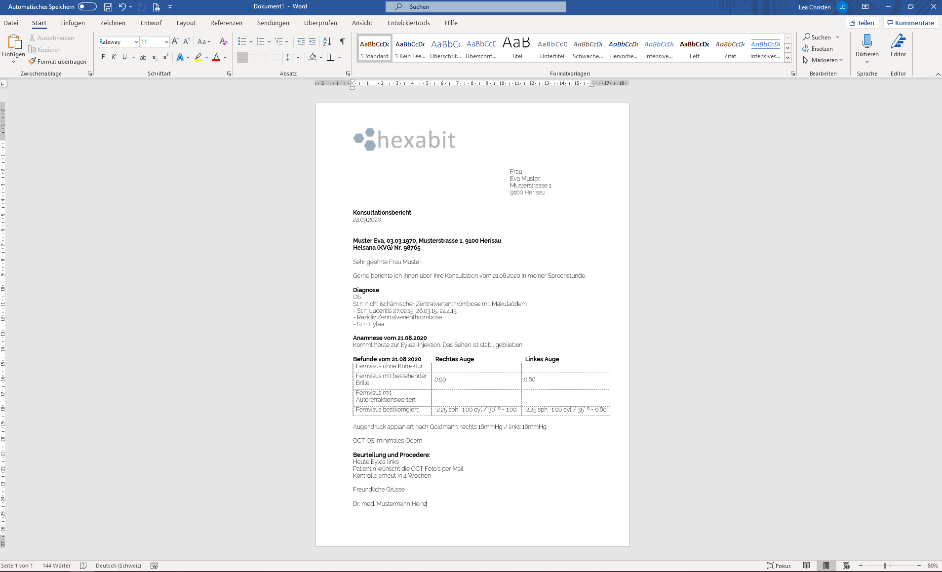 Mit dem Luna-Berichtwesen erstellen Sie mit minimalem Aufwand aussagekräftige Berichte, die Sie als Word- oder PDF-Datei anlegen können. Das Tool ist kompatibel mit Microsoft Word und LibreOffice. Die Daten werden mittels Luna automatisch in Ihre individuellen Berichtvorlagen eingetragen. Interventionsempfehlungen und passgenaue Einschätzungen zur Situation des Patienten sind so sehr schnell gemacht. Grussformeln und Signaturen können für jeden gewünschten Benutzer personalisiert werden.