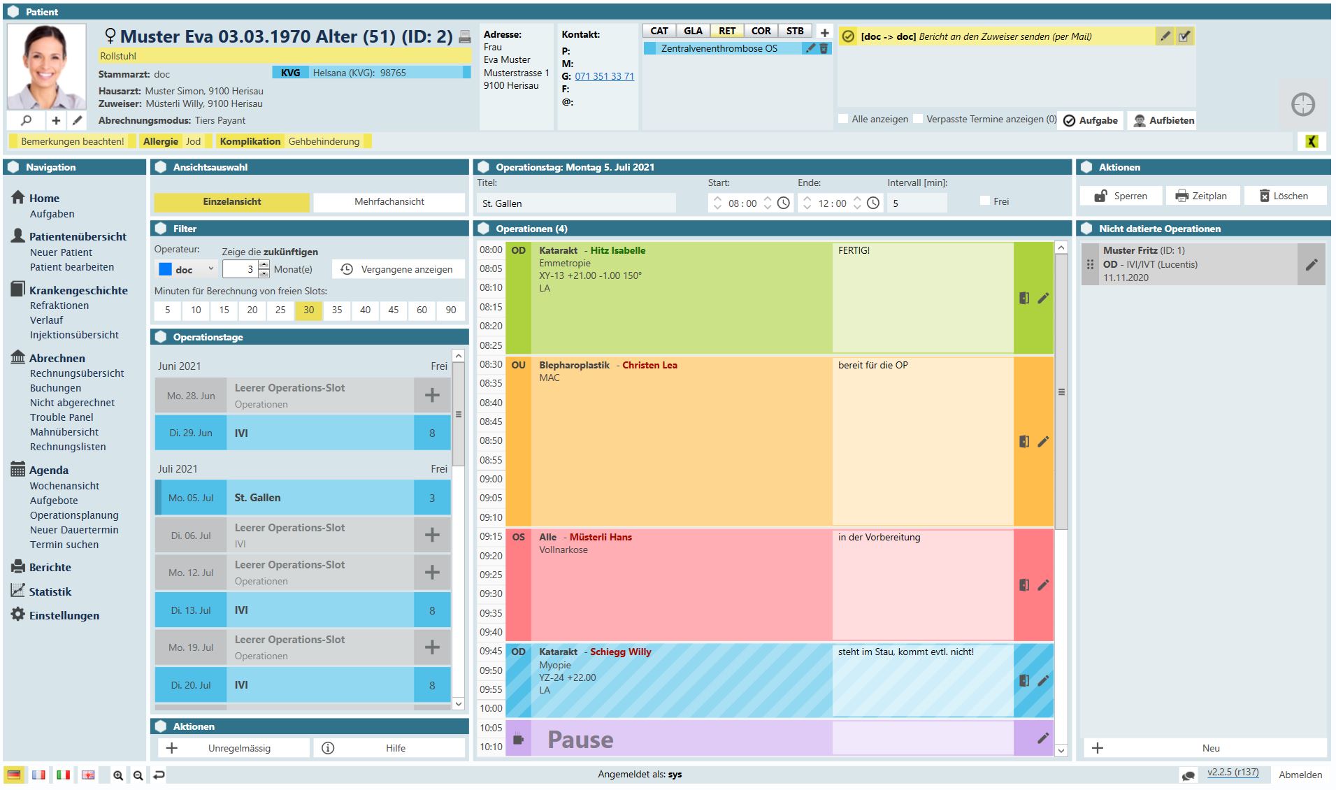 Mit Hexabit Luna gestalten Sie Ihre OP-Planung einfacher und sicherer denn je. Die intuitive Software zeigt Ihnen für jede OP (Katarakt, IVI, etc.) alle wichtigen Informationen an. Dazu gehören beispielsweise Implantat- oder Linsentyp, Refraktionsziel und Anästhesieart. Sämtliche Daten können Sie auch mittels einer individualisierten Vorlage ausdrucken, damit Sie im Operationssaal stets die Übersicht haben.