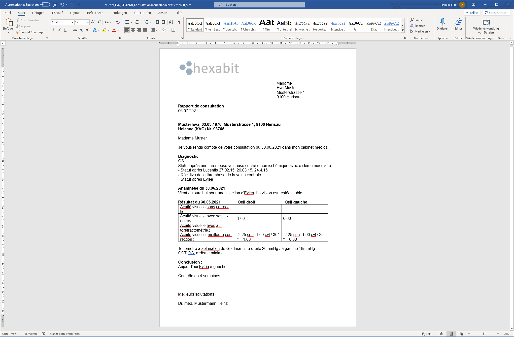 Avec l’outil de rapports Luna, rédigez sans effort des comptes-rendus pertinents que vous pouvez enregistrer au format Word ou PDF. Cet outil est compatible avec Microsoft Word et LibreOffice. Les données sont saisies automatiquement dans vos modèles de rapports personnalisés à l’aide de Luna. Les recommandations d’intervention et les évaluations précises de la situation du patient sont ainsi réalisées en un clin d’œil. Les formules d’usage et autres signatures peuvent être personnalisées pour chaque utilisateur.